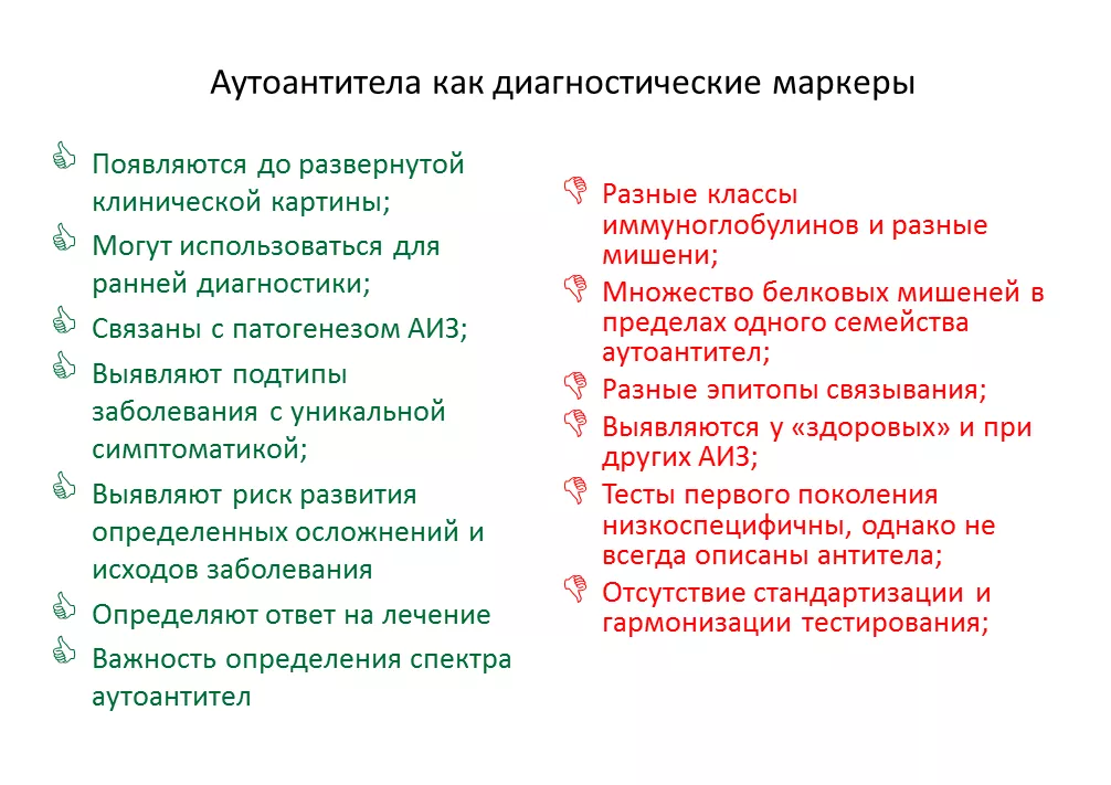 Целый ряд особенностей отличают методы обнаружения аутоантител от оценки содержания других биологических молекул в биологических жидкостях, поэтому ряд аспектов диагностического использования аутоантител требует отдельного освещения.
