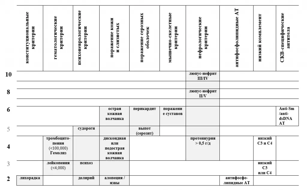 4) Petri M, Orbai AM, Alarcon GS, Gordon C, Merrill JT, Fortin PR, et al. Derivation and validation of the Systemic Lupus International Collaborating Clinics classification criteria for systemic lupus erythematosus.//Arthritis Rheum 2012;64:2677–86. DOI: 10.1002/art.34473