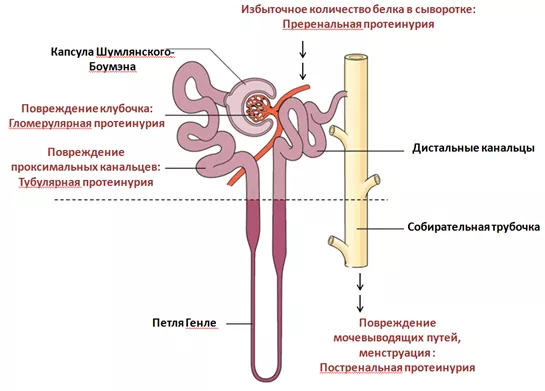 Тип протеинурии устанавливается на основе анализа распределения белковых фракций и позволяет оценить локализацию и степень повреждения нефрона, а также выявить наличие парапротеина. Различают следующие варианты протеинурии: